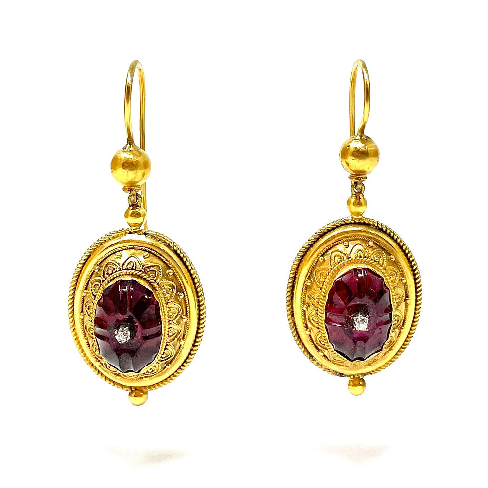 Antique 15 Carat Gold and Garnet Etruscan Revival Earrings