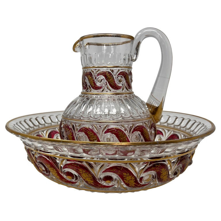 Antique Baccarat Enameled Bowl and Pitcher, circa 1880
