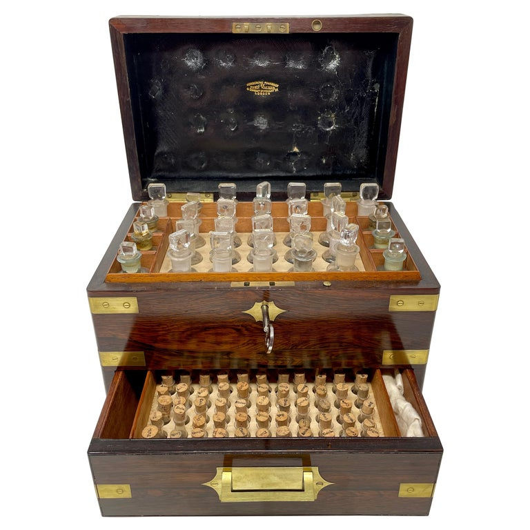 Antique English Brass-Mounted Rosewood Complete Apothecary Case, Circa 1880
