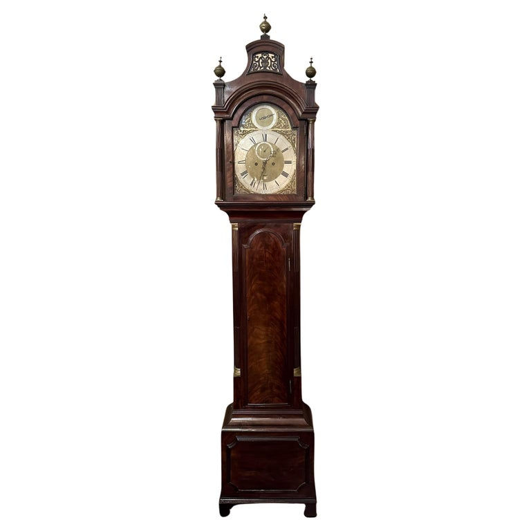Antique English George III Flamed Mahogany "John Scott" Grandfather Clock