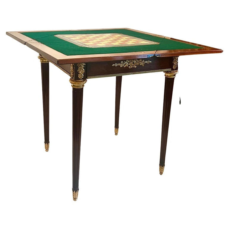 Antique French Gold Bronze & Mahogany Folding Chess Board Card Table, Circa 1885