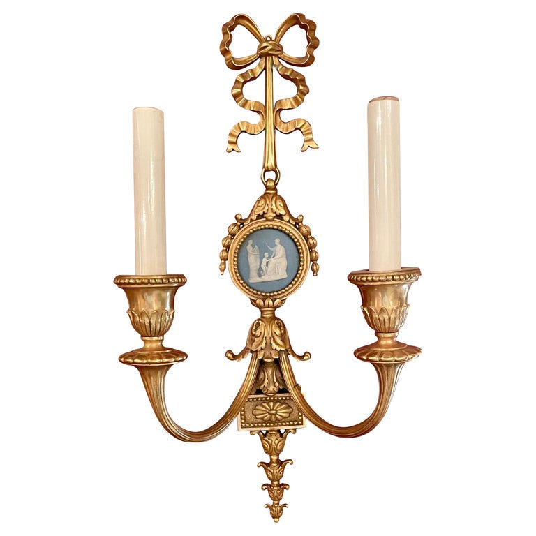 Antique French Gold Bronze Wall Sconce with Wedgwood Sconce, Circa 1900