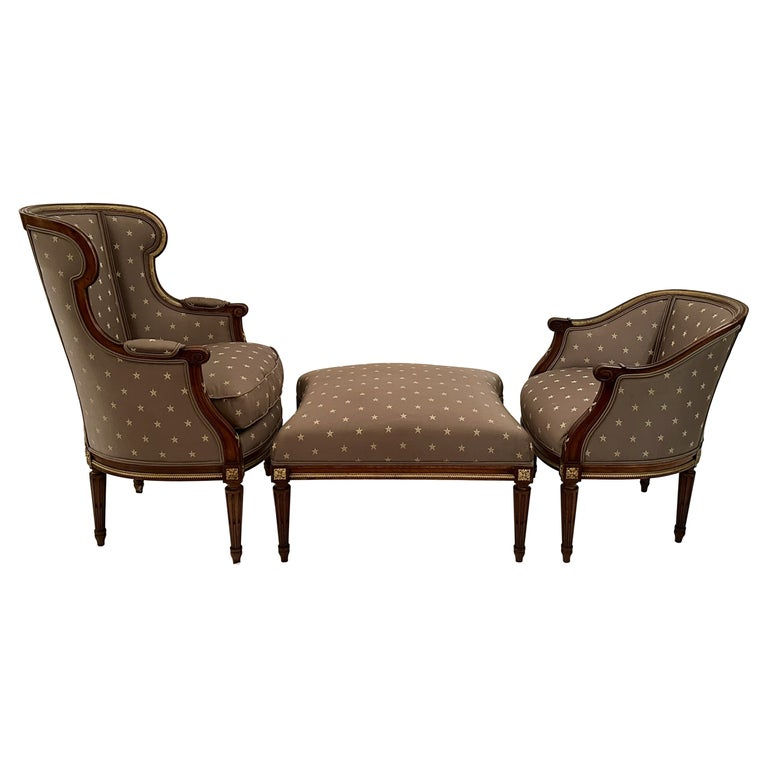 Antique French Louis XVI Ormolu Mounted Mahogany 3 Piece Duchesse Brisée Ca 1880
