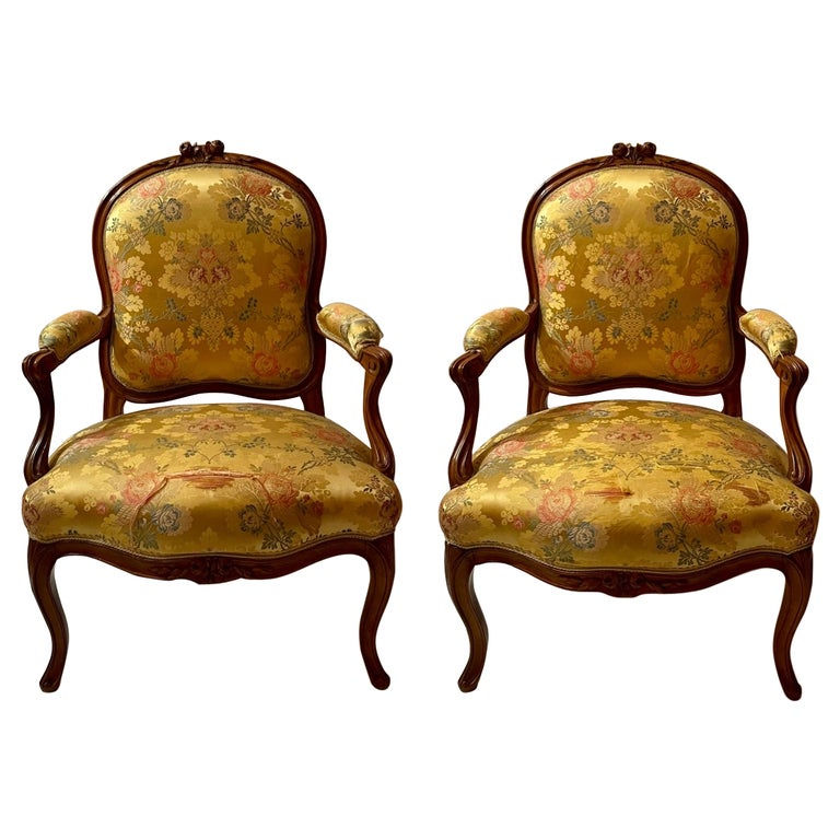 Pair Antique French Provincial Carved Fruitwood Fauteuils Circa 1890