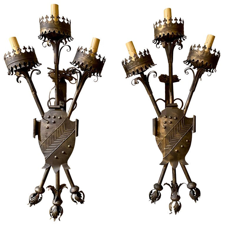 Pair Antique French Renaissance Tole Sconces, Circa 1900.