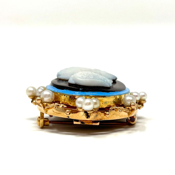 Antique 14K Gold Stone Cameo, Enamel and Pearl Pin/Pendant