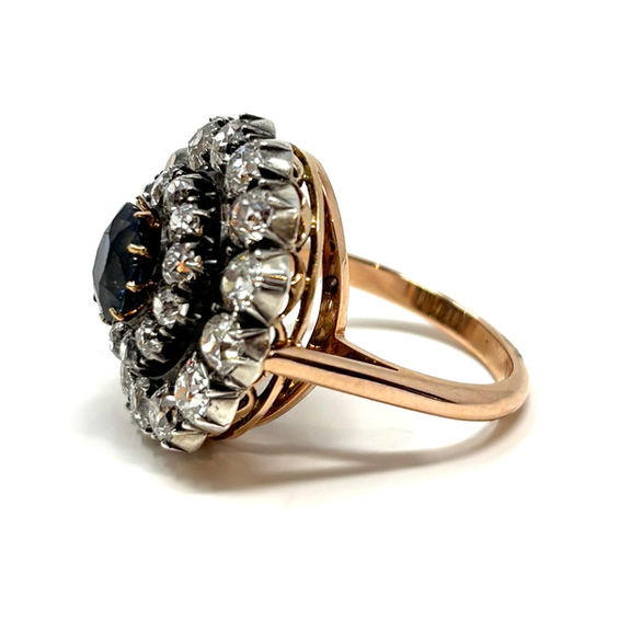 Antique 14K Rose Gold Sapphire and Diamond Cluster Ring