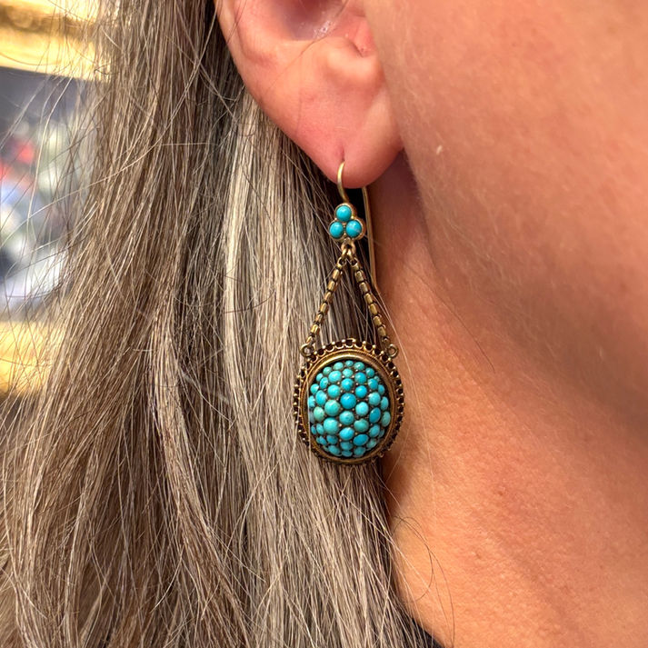 Antique 15 Carat Gold Persian Turquoise Earrings