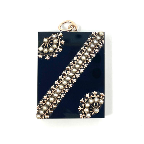 Antique American 14K Gold Onyx and Pearl Pendant