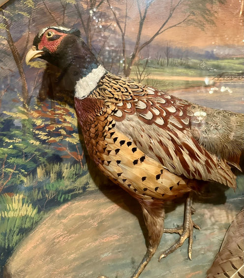 Antique American Shadowbox Diorama of Two Pheasants, Signed Herman Grieb 1922.