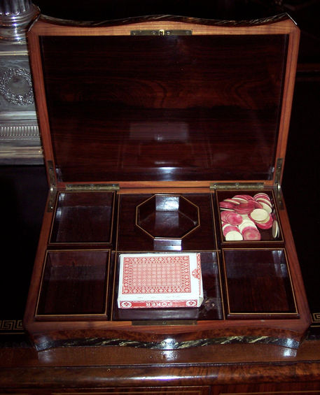 Antique Briar Wood Game Box Fitted with Markers and Cards circa 1870-1880