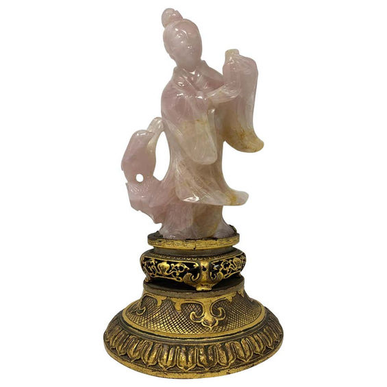 Antique Chinese Rose Quartz Statue circa 1890-1910