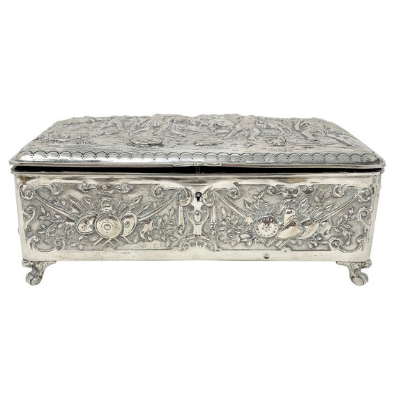 Antique Continental Silver Repousse Jewel Box, Circa 1875-1895.