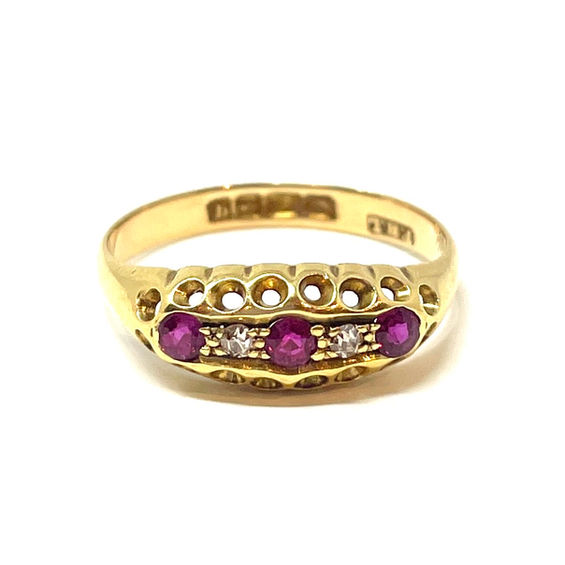 Antique English 18 Carat Gold Ruby and Diamond Ring