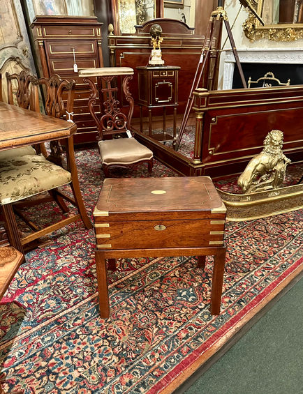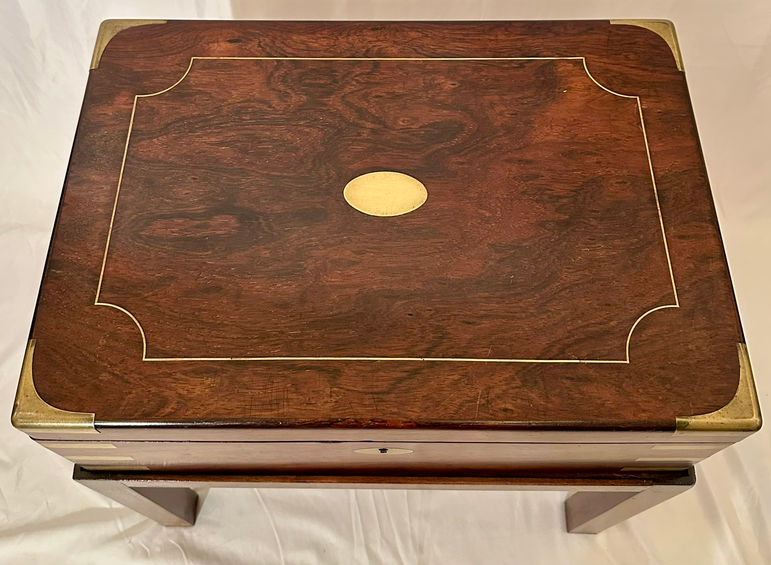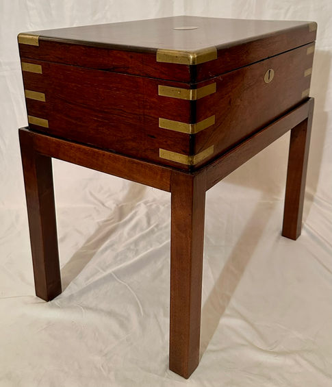 Antique English Brass Banded Rosewood Box on Stand, Circa 1880.