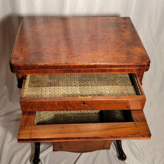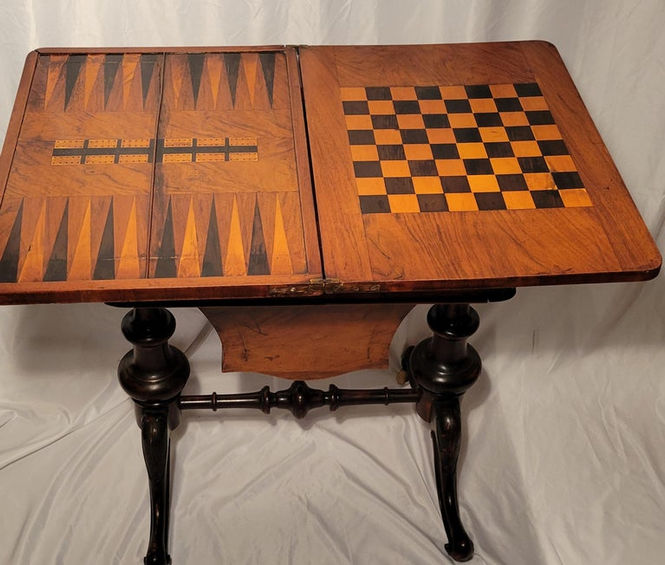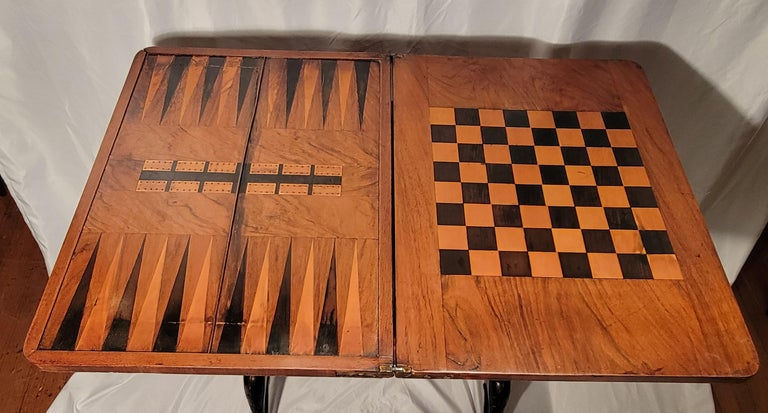 Antique English Burled Walnut & Exotic Wood Inlay Games Table, Circa 1860-1870.