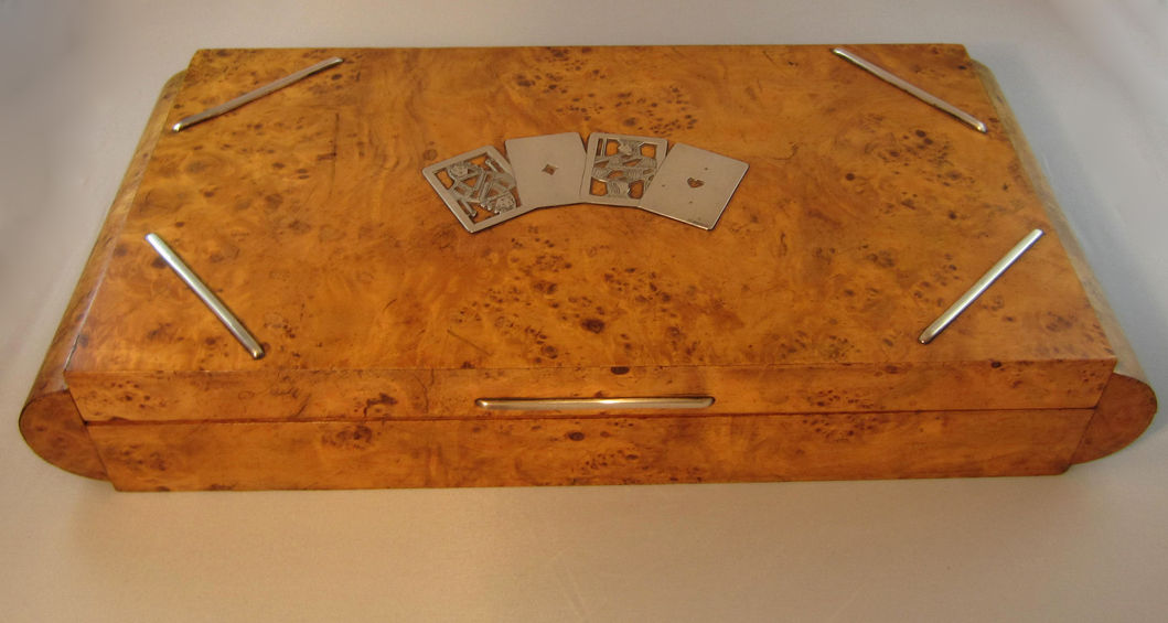 Antique English Games Box 19th Century Rare Burl with Sterling Silver