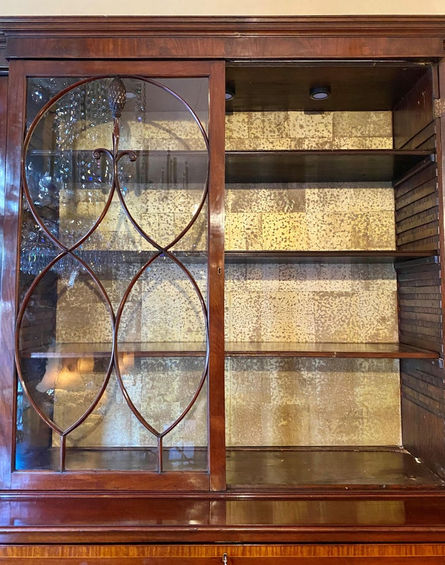 Antique English Georgian Mahogany with Inlay Secretary Breakfront, Circa 1840