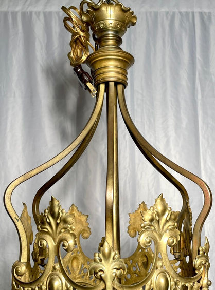 Antique English Gothic Gold Bronze Hall Lantern, Circa 1900