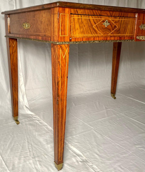 Writing tables or writing desks were used in the library or personal study of the privileged homeowner. The writing surface was covered with leather, and these desks were designed with compartments for organizing and storing writing accessories, stationery and documents. Some even had secret spaces, accessible via a hidden trigger mechanism. Writing tables could also have side pieces that extended outwards to allow for