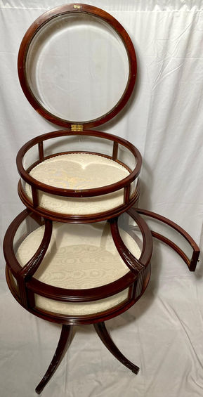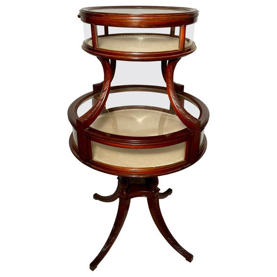 This is a clever double vitrine. Vitrines were glass showcases or cabinets for displaying collections or precious possessions. They were common from the 17th through the 19th centuries and ranged in style from the simple to the ornate.