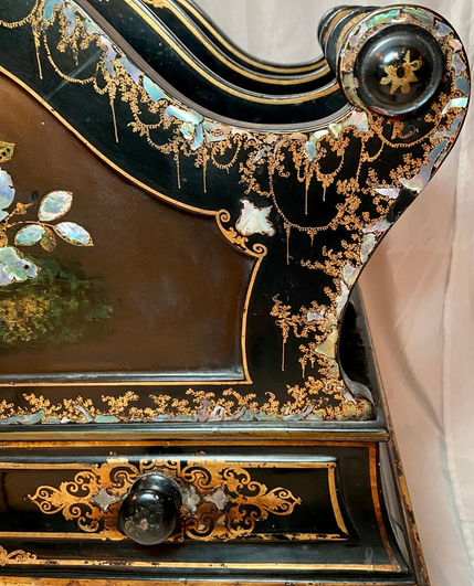 Antique English Victorian Black Lacquer with Mother of Pearl Canterbury