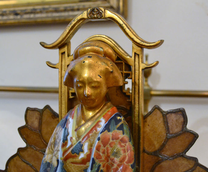 Antique French Art Nouveau Lamp--Kuan Xen Figure with Stained Glass, Circa 1890.