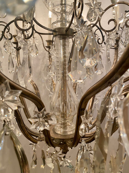 Antique French Belle Epoque Crystal and Silvered Bronze 12-Light Chandelier