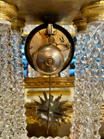 Antique French Brilliant Cut Crystal and Gold Bronze Clock, Circa 1880-1890
