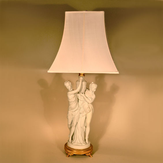 Antique French Bronze D'ore Bisque Lamp circa 1890
