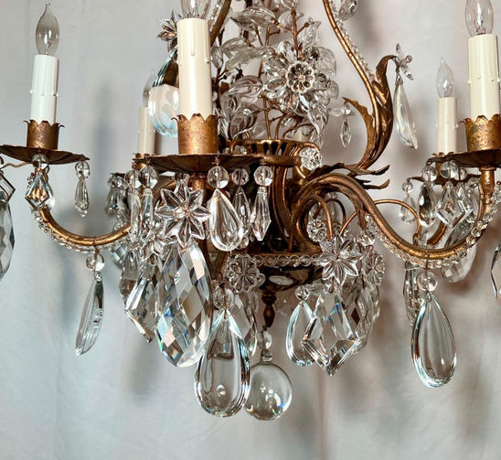 Antique French Crystal and Iron Chandelier, Circa 1890