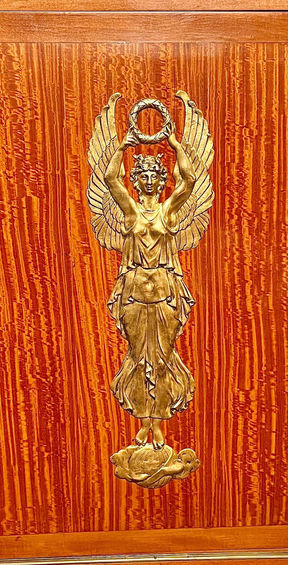 The Empire style flourished during the reign of Emperor Napoleon Bonaparte from 1805-1814. Napoleon was in love with the sense of his own importance and greatness, and the Empire style reflected this in imposing, lavish pieces made to exacting standards. He was attracted to the ancient Greco-Roman and Egyptian cultures and borrowed heavily from their imagery, symmetry and rich ornamentation for decoration. Napoleon wanted the world to recognize the greatness of the French, and he achieved this with the Empire style, considered luxury furniture and wildly popular among the upper classes. The style remained popular throughout the 19th century.