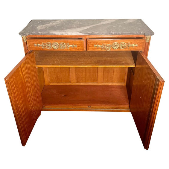 Antique French Empire Ormolu Mounted Marble-Top Satinwood Cabinet, Circa 1890