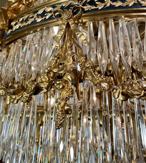 Antique French Baccarat Crystal & Bronze D'ore Waterfall Chandelier, Circa 1880