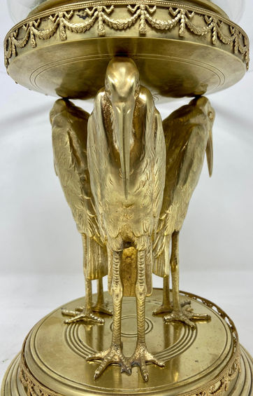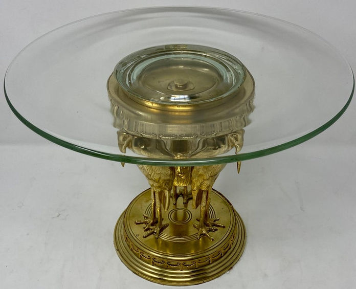 Antique French Gold Bronze and Crystal "Stork" Tazza