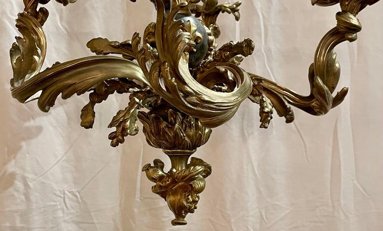 Antique French Louis XV Gold Bronze Chandelier with Fleur-de-Lis, Circa 1890's.
