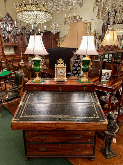The design style known as Louis XVI dates to the reign of King Louis XVI of France (1774-1792). The style appeared in architecture, furniture, decoration and art and rejected the elaborate ornate curves and frilly embellishments of the preceding Baroque period. Louis XVI’s queen, Marie Antoinette, was instrumental in returning design focus to a style characterized by the elegance and of ancient Greek and Roman models, employing the use of ornate detail, precise shapes, light and refined color palettes, and symmetry. The royal apartments in the palaces of Versailles, Fontainebleau, Tuileries, as well as other royal residences contain outstanding examples of these beautiful designs. No expense was spared to create elegant, refined and expertly crafted wares produced by the master craftsmen of the period in this period just prior to the French Revolution.