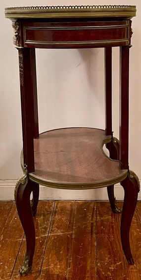 Antique French Mahogany & Gold Bronze Marble Top Kidney Shaped Table, Circa 1890