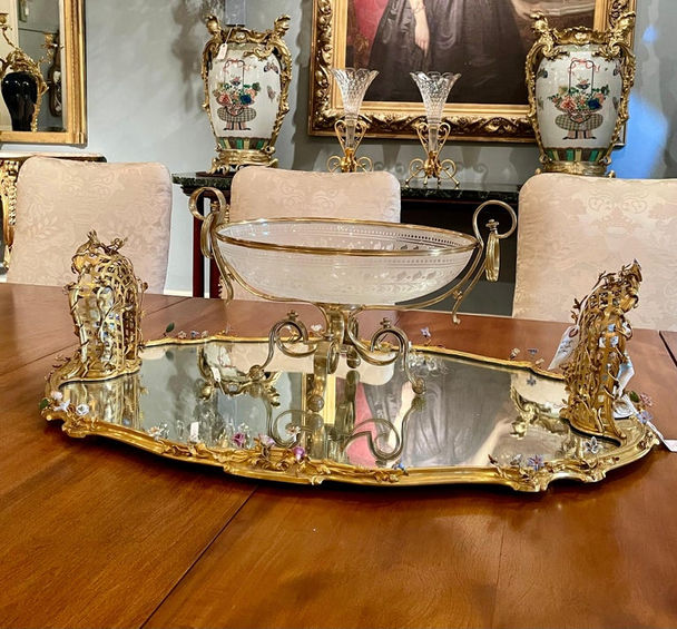 Antique French Napoleon III Ormolu Mounted Crystal Centerpiece, Circa 1885.