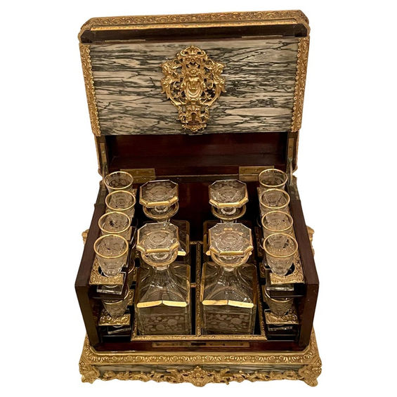 Antique French Napoleon III Ormolu Mounted Marble Cave à Liqueur Circa 1870-1880