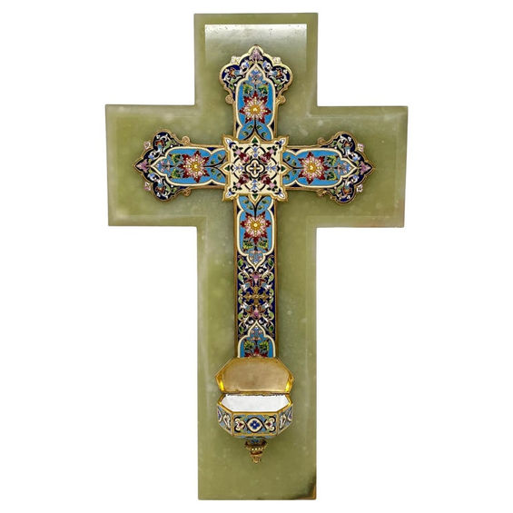 Antique French Onyx & Cloisonné Benetier, Circa 1920s
