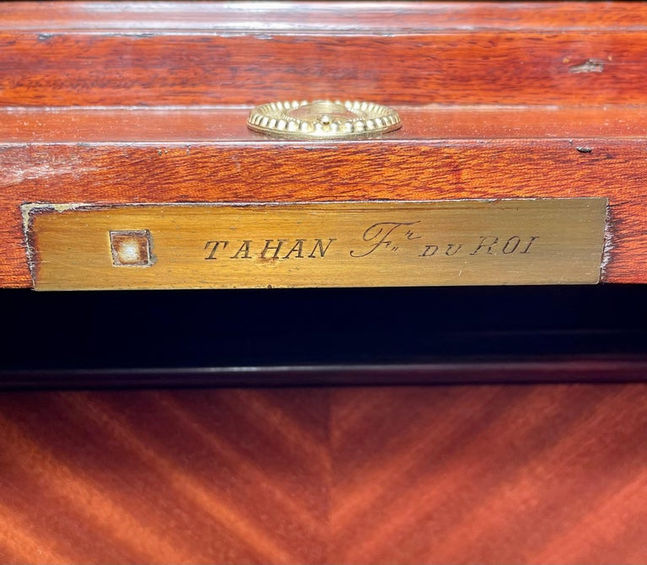 The individual known as "Tahan du Roi" ( Tahan to the King) was Jean-Pierre-Alexandre Tahan, a highly acclaimed French ébéniste (cabinetmaker) during the 19th century. He was known for crafting exquisite, small, precious pieces of furniture, as well as caskets, perfume boxes, jewelry boxes, and luxury canes.