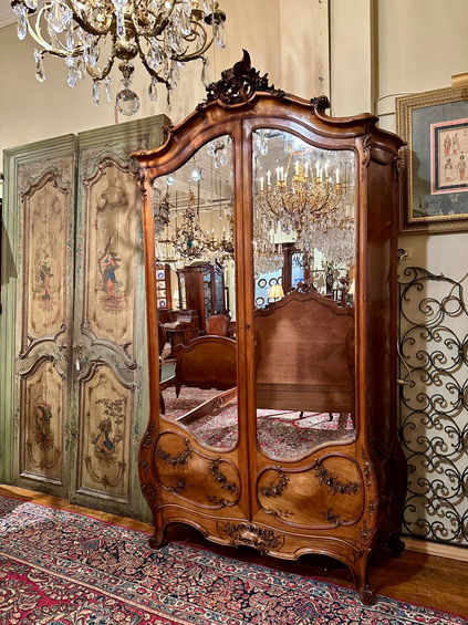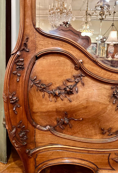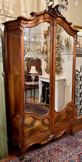 Antique French Sculpted Walnut and Mirrored Armoire Signed "Mercier Bros."