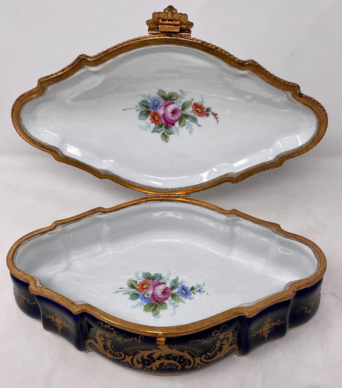Antique French Sevres Porcelain Cobalt Blue & Gold Box, Circa 1900.