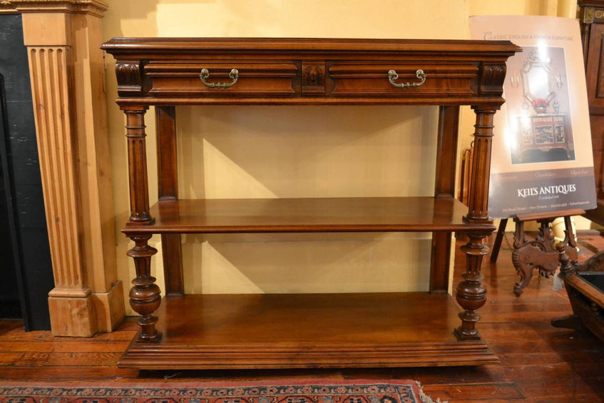 Antique French Walnut Marble-Top Serving Table, Circa 1880