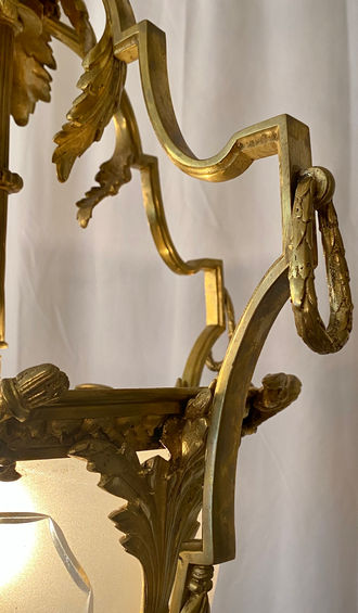 Antique Gold Bronze Hall Lantern with Finely Cut and Etched Glass, Circa 1900