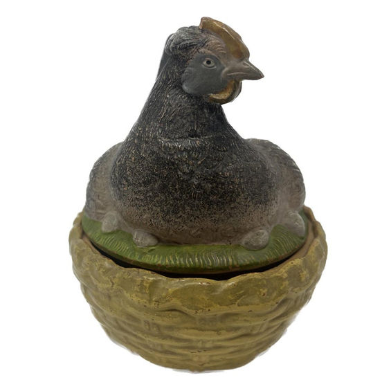 Antique Late 19th Century German Pottery Hand-Painted Covered Hen & Nest