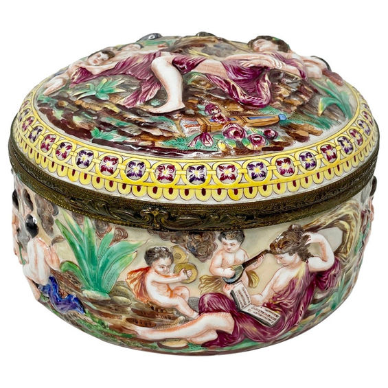 Antique Late 19th Century Italian Capo di Monte Porcelain Jewel Box.