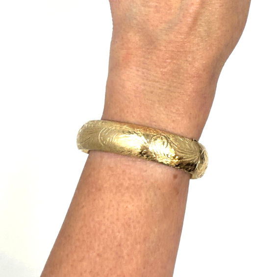 Estate 14K Brushed Gold Engraved Bangle