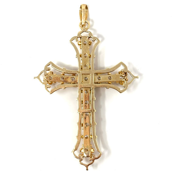Estate 14K Gold Enamel and Diamond Cross Pendant
